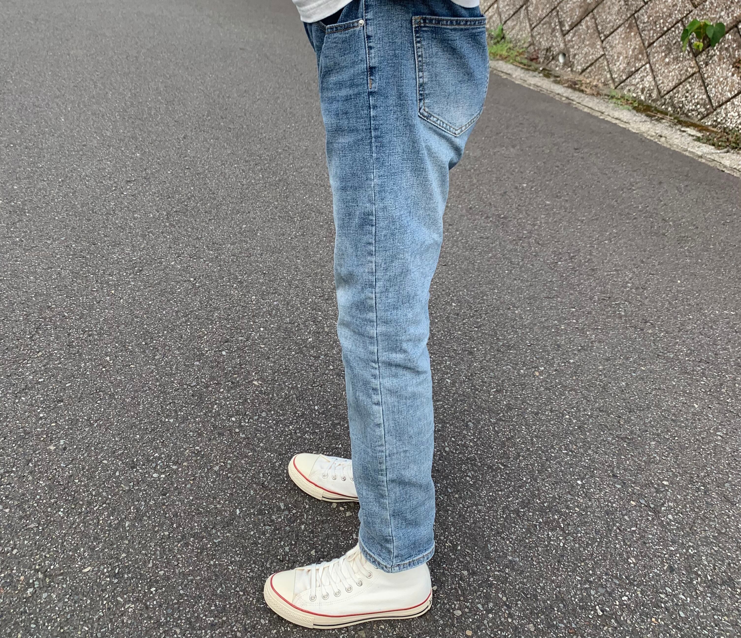 しっかりとした生地感で厚みのある、定番ストレートデニム。